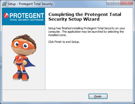 Step 10: Protegent’s mascot “Proto” on the left bar confirms that installation has been successfully completed and ensures you with the “Finish” setup wizard.