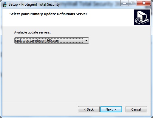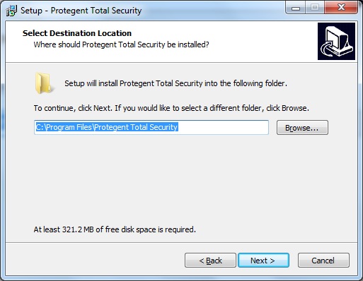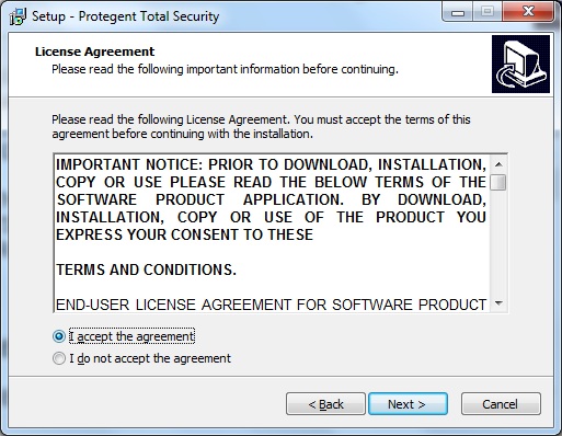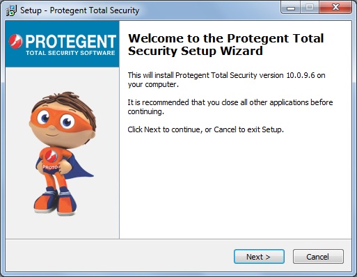 Step 2:Clicking “Yes” will take you to the Protegent Total Security Setup screen:
